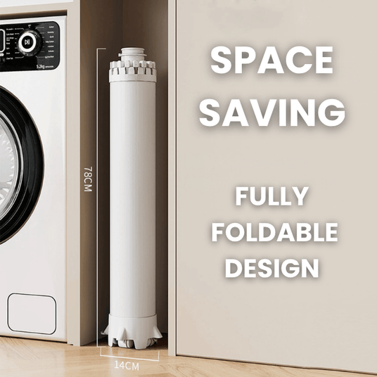 Fully foldable design collapses into a slim cylinder that fits easily in closets or tight laundry spaces.